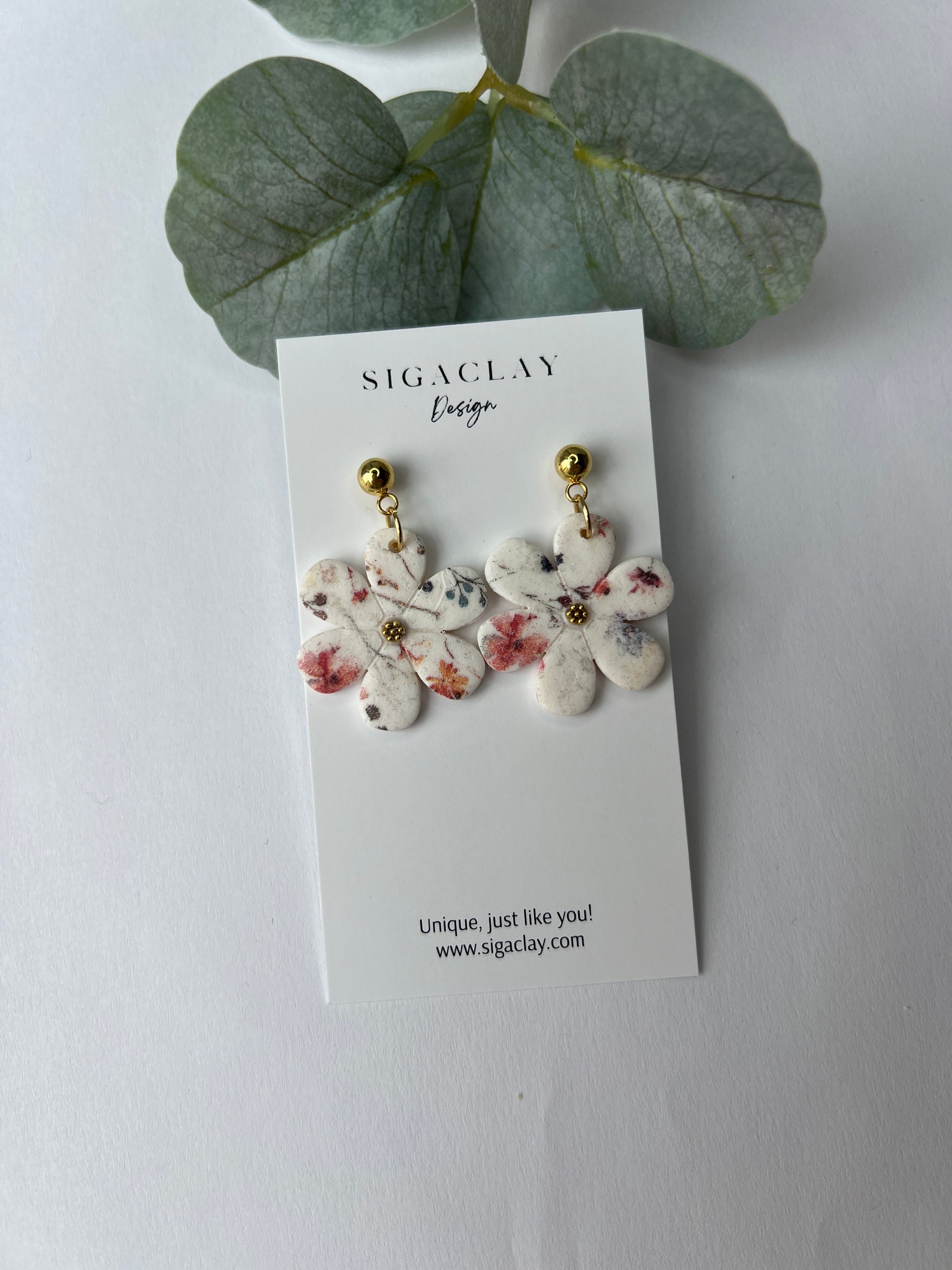 All Siga Clay earrings are handcrafted with polymer clay - we do ask that you handle them with care. Please do not place heavy items on your earrings or allow them to bend to avoid breakage. Please keep earrings away from oils and perfumes. Clean with water or mild soap with a damp clean cloth or soft brush. Store in a cool, dry area.