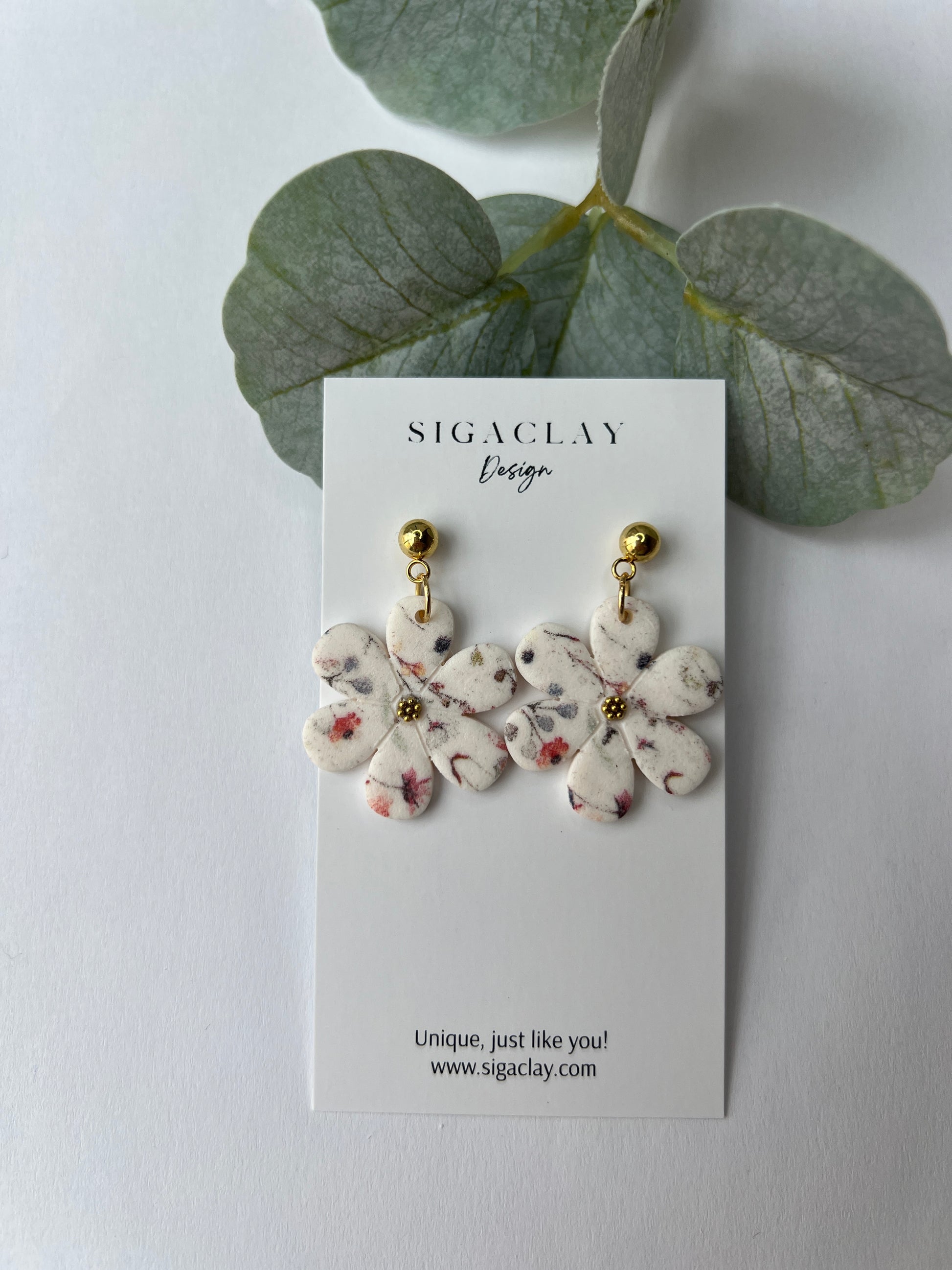 All Siga Clay earrings are handcrafted with polymer clay - we do ask that you handle them with care. Please do not place heavy items on your earrings or allow them to bend to avoid breakage. Please keep earrings away from oils and perfumes. Clean with water or mild soap with a damp clean cloth or soft brush. Store in a cool, dry area.