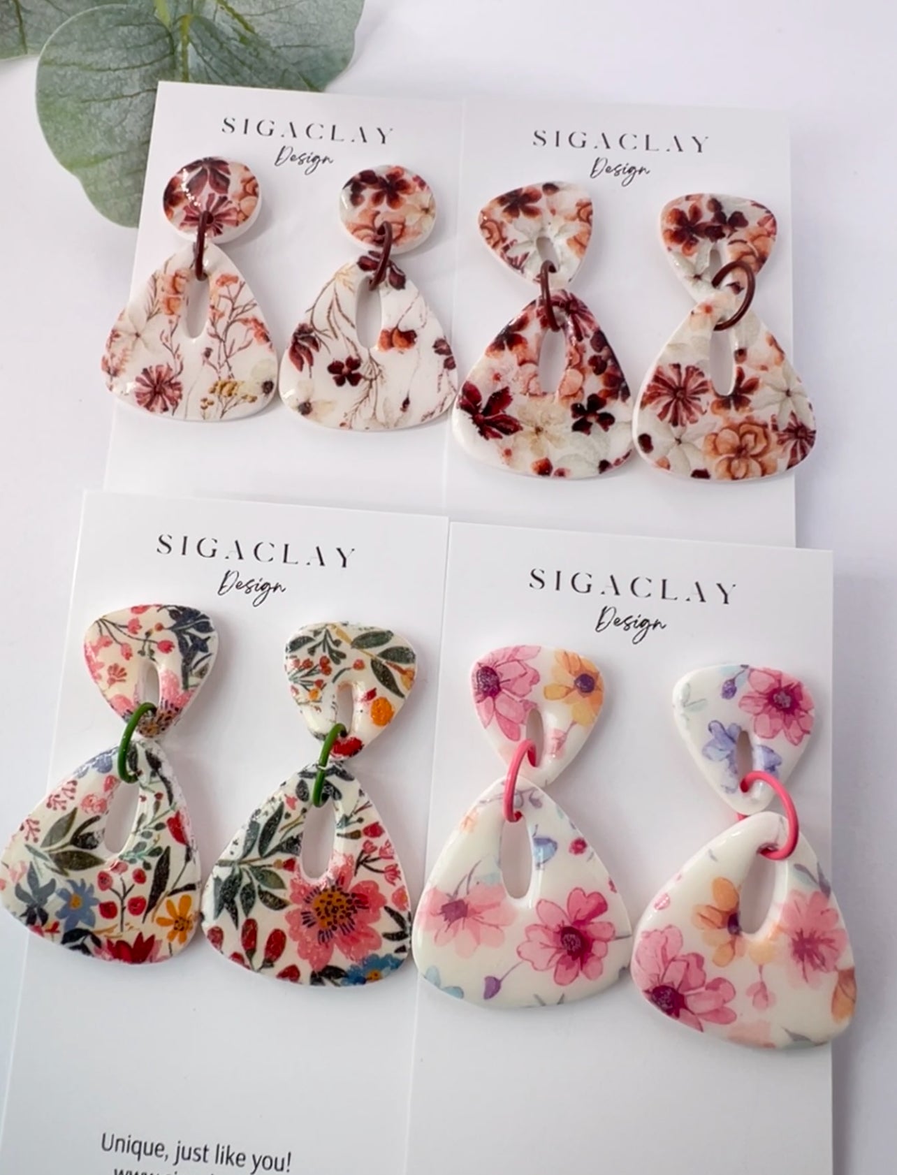 All Siga Clay earrings are handcrafted with polymer clay - we do ask that you handle them with care. Please do not place heavy items on your earrings or allow them to bend to avoid breakage. Please keep earrings away from oils and perfumes. Clean with water or mild soap with a damp clean cloth or soft brush. Store in a cool, dry area.